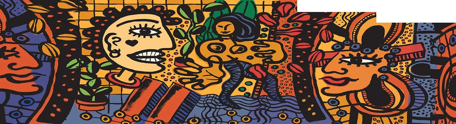 A cool, local coffee shop asked me to create an image for their new location in Old South London. The wall is on a side street off a busy thoroughfare and I knew the design needed to grab your attention from this busy street and traffic hence the palette selection. I knew it would also be a backdrop for their summer patio, so again, no definitive obvious images but rather a cool atmosphere vibe with this contemporary pattern.